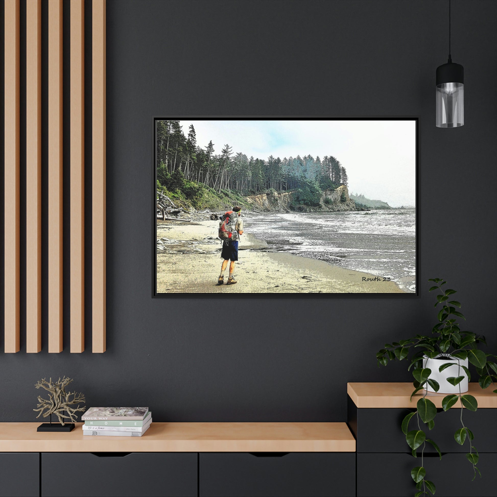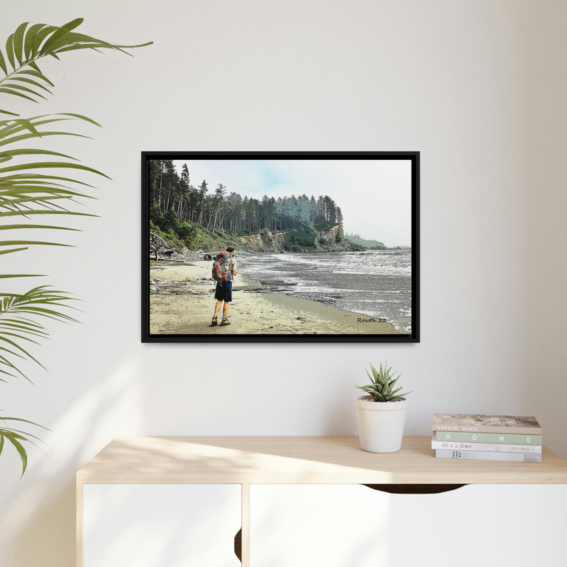 Original artwork by Bob Routh, Artistic Impressions by Bob Routh. Every print in a black pinewood frame will look sleek and beautiful in any interior. Your original designs will be printed on the cotton-polyester canvas with a special proprietary coating to make sure your designs stay vibrant for ages. An excellent product for your environmentally-conscious buyers – it's made from sustainably sourced materials (Forest Stewardship Council certified). Choose between multiple sizes for different types of prints. The sawtooth hanging hardware is already attached.